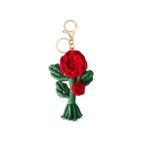 Exquis tissé à la main Rose pendentif tissé créatif laine Crochet fleur Rose porte-clés sac accessoires Thanksgiving fête des mères cadeau