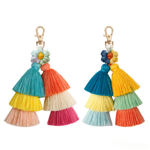 2023 gros tricoté à la main Crochet Boho coton gland Floral porte-clés macramé coton sac accessoires promotionnel porte-clés