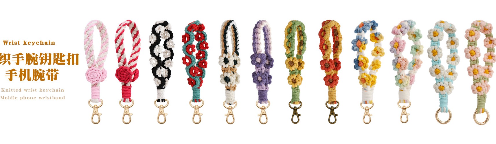 2024 Bán Buôn Daisy Hoa Macrame Bện Keychain Boho Dây Đeo Chìa Khóa Cổ Tay Dây Buộc Keyring Điện Thoại Di Động Chuỗi Quyến Rũ